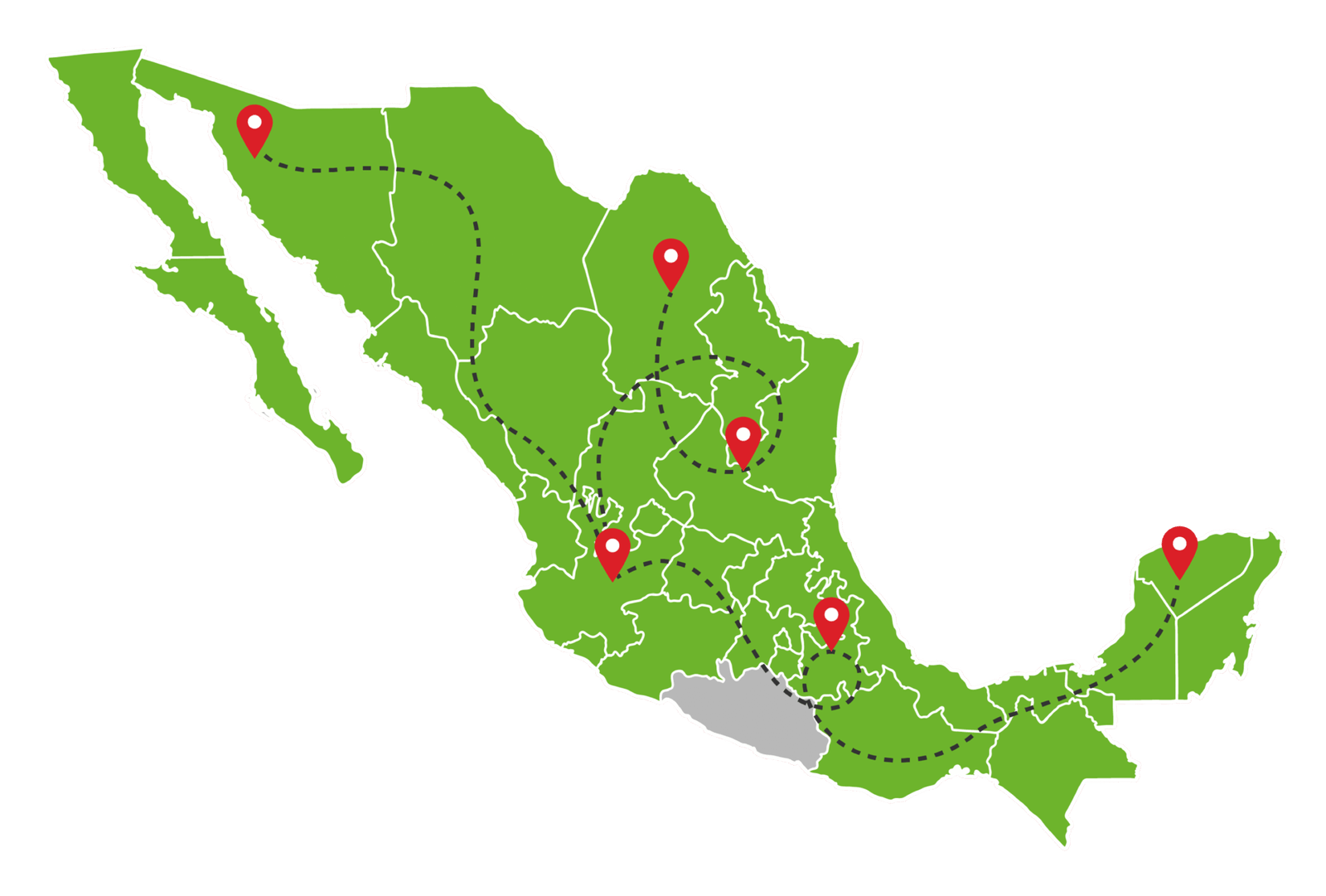 Rutas de entrega propias y venta a través de nuestros distribuidores en todo México.